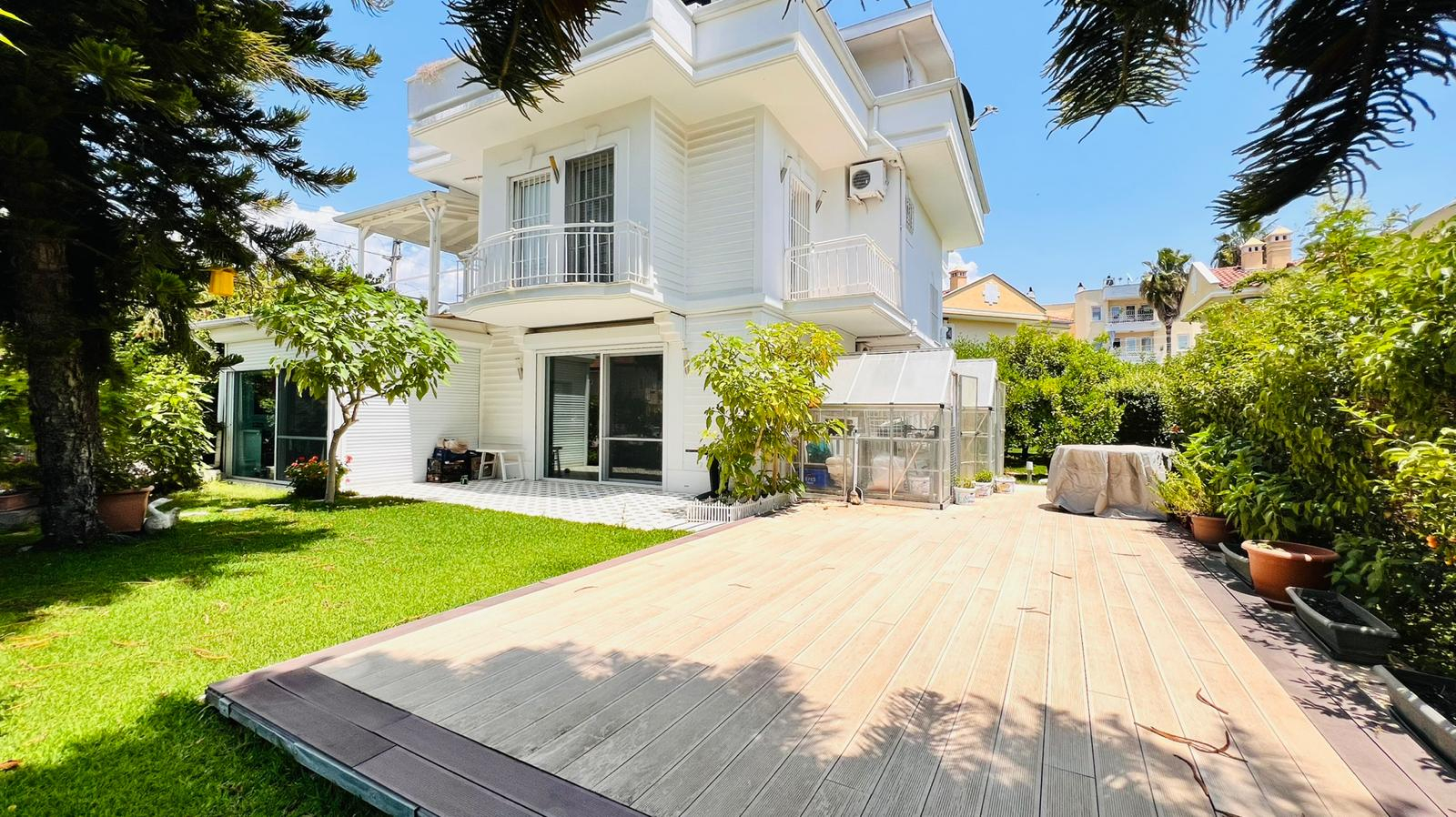 This villa is situated on the corner of a very nice road in the centre of Fethiye, with several parking areas around it. It has a nice big terrace with a garden area and greenhouse where you can grow your own vegetables.